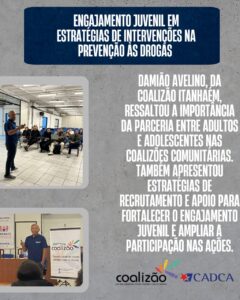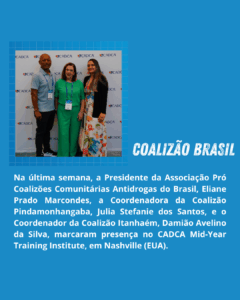 A Associação Pró Coalizões Comunitárias Antidrogas do Brasil, parceira oficial da CADCA e reconhecida por organismos internacionais como o VNGOC e o ECOSOC da ONU, reforçou seu compromisso em apoiar a juventude e expandir a metodologia de coalizões comunitárias, que já atua em quatro estados brasileiros.