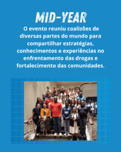 Durante os cinco dias de evento, os representantes brasileiros participaram de treinamentos, oficinas e painéis temáticos sobre práticas baseadas em evidências, fortalecimento da capacidade comunitária, políticas públicas de prevenção e o papel das coalizões na transformação social. Além disso, a delegação nacional teve a oportunidade de dialogar com líderes de outros países, compartilhar experiências bem-sucedidas e reforçar a visibilidade das ações brasileiras no cenário internacional.