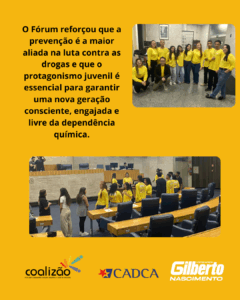 O Fórum deixou como legado a certeza de que a prevenção é a maior aliada na luta contra as drogas e que a juventude tem papel essencial na construção de um futuro mais consciente, saudável e livre da dependência química.
