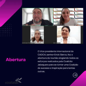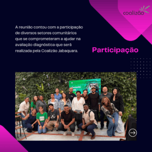 A Coalizão Jabaquara promove reuniões periódicas para discutir estratégias e avaliar as ações desenvolvidas. Esses encontros são abertos à participação da comunidade e de interessados em contribuir com as iniciativas de prevenção e promoção da saúde no bairro.